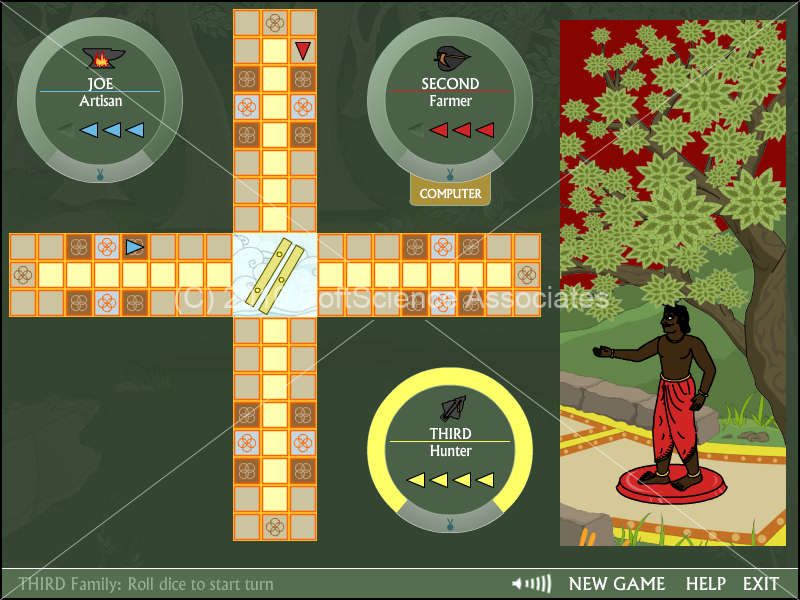 SoftScience is developing a video series focusing on retelling a traditional Indian story. As an accompaniment to this video series, a game was developed to engage students and parents. The game is Flash based and mimics a parchesi board, but with popups that challenge the player with questions about traditional Indian life. After several abortive attempts by other developers, Toque Innovations brought the game to completion as well as revamping the graphical interface to be consistent and exciting.